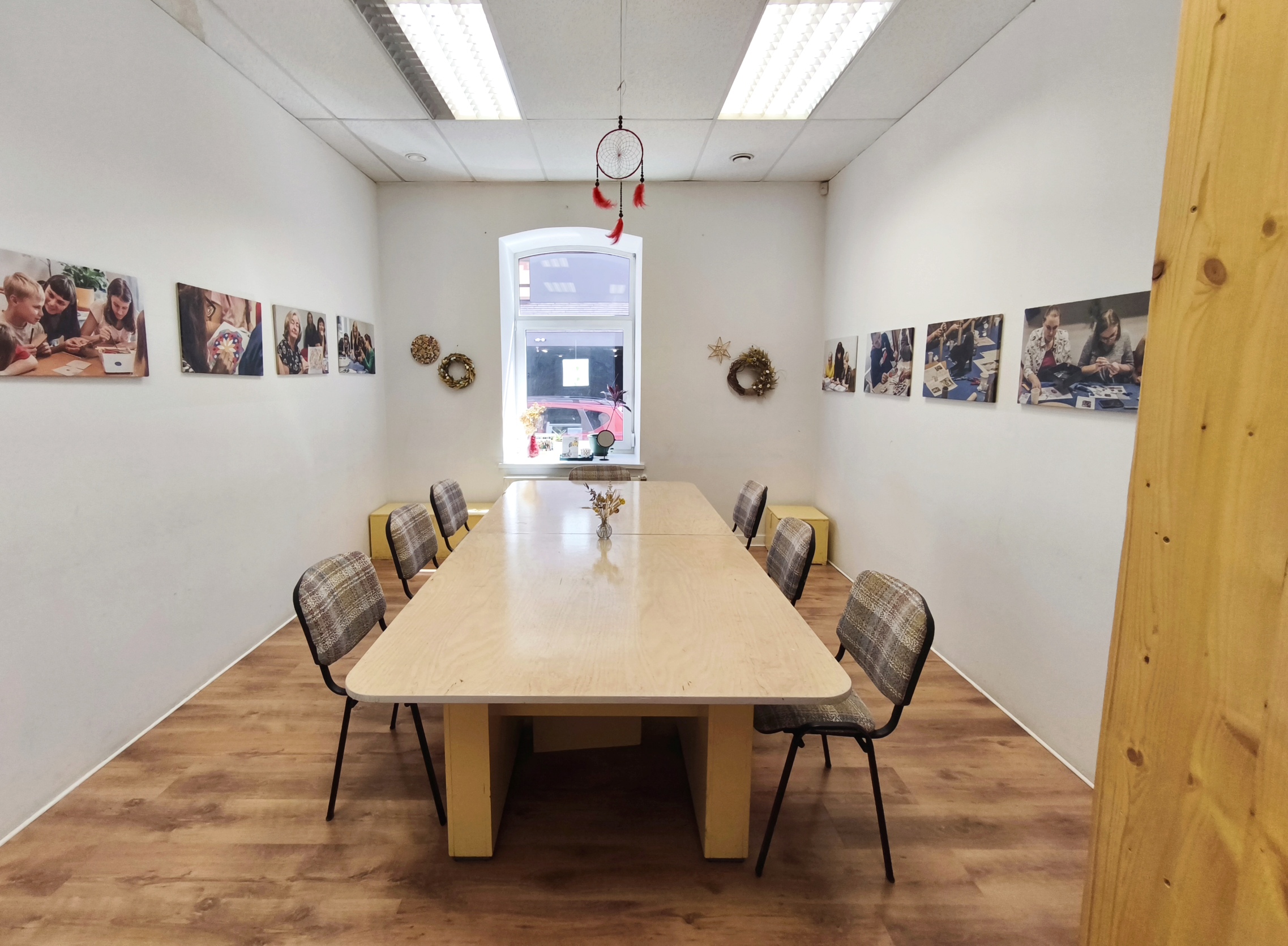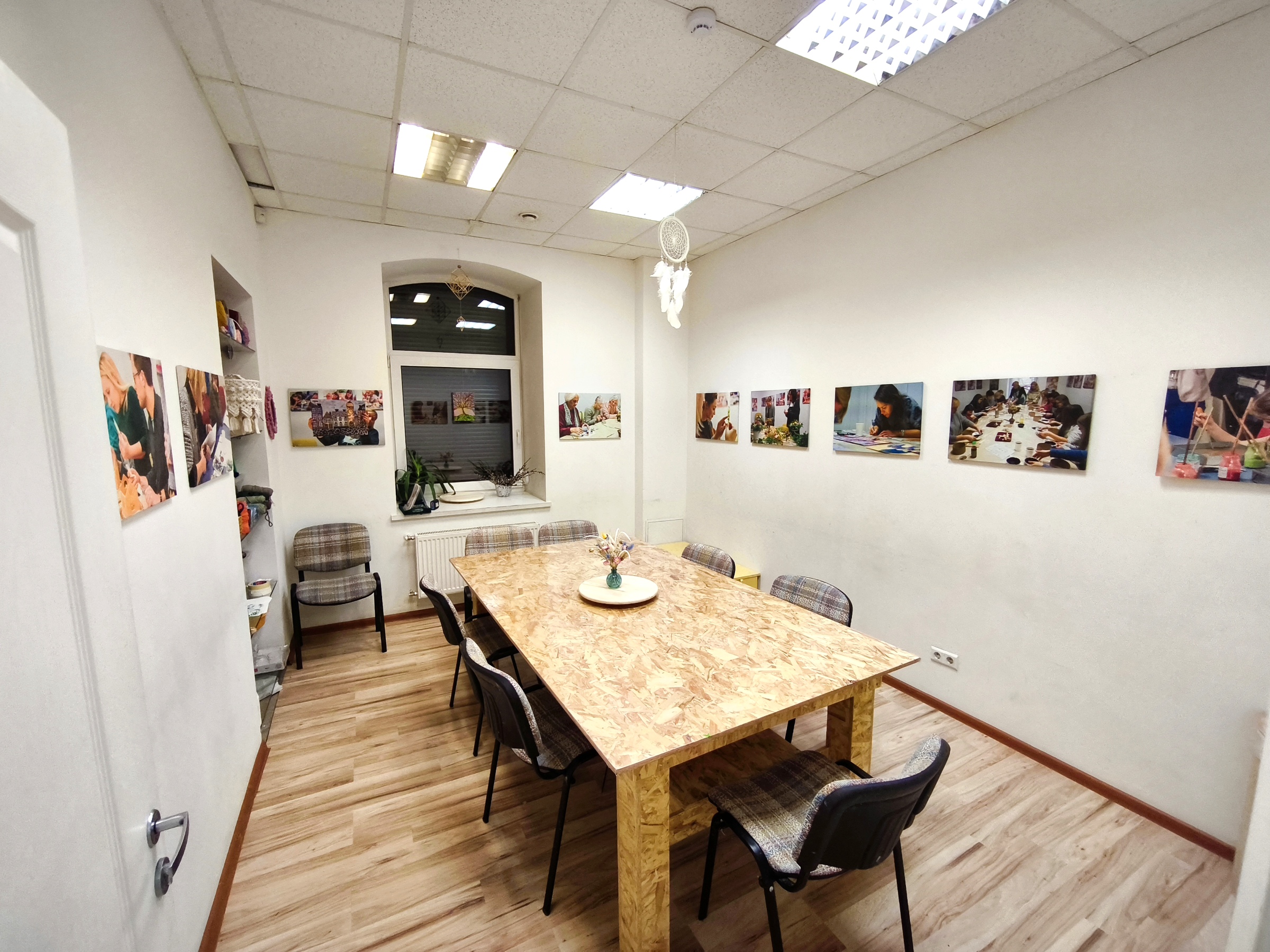 Kambariuose (30 kv.m., 20 kv.m.,16 kv.m.ir 14 kv.m.) yra dideli posėdžių stalai bei kėdės.