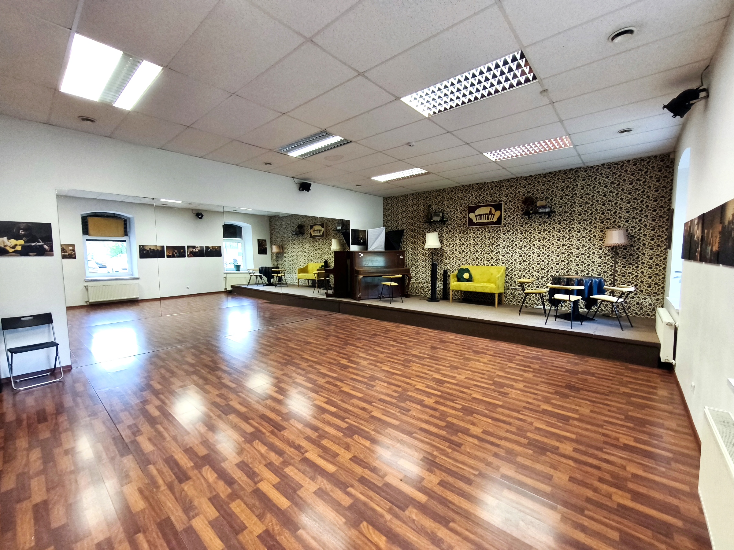 Salėje (60 kv.m.) yra scena ir garso aparatūra, koncertinis pianinas, kėdės (110vnt.) ir veidrodžiai.