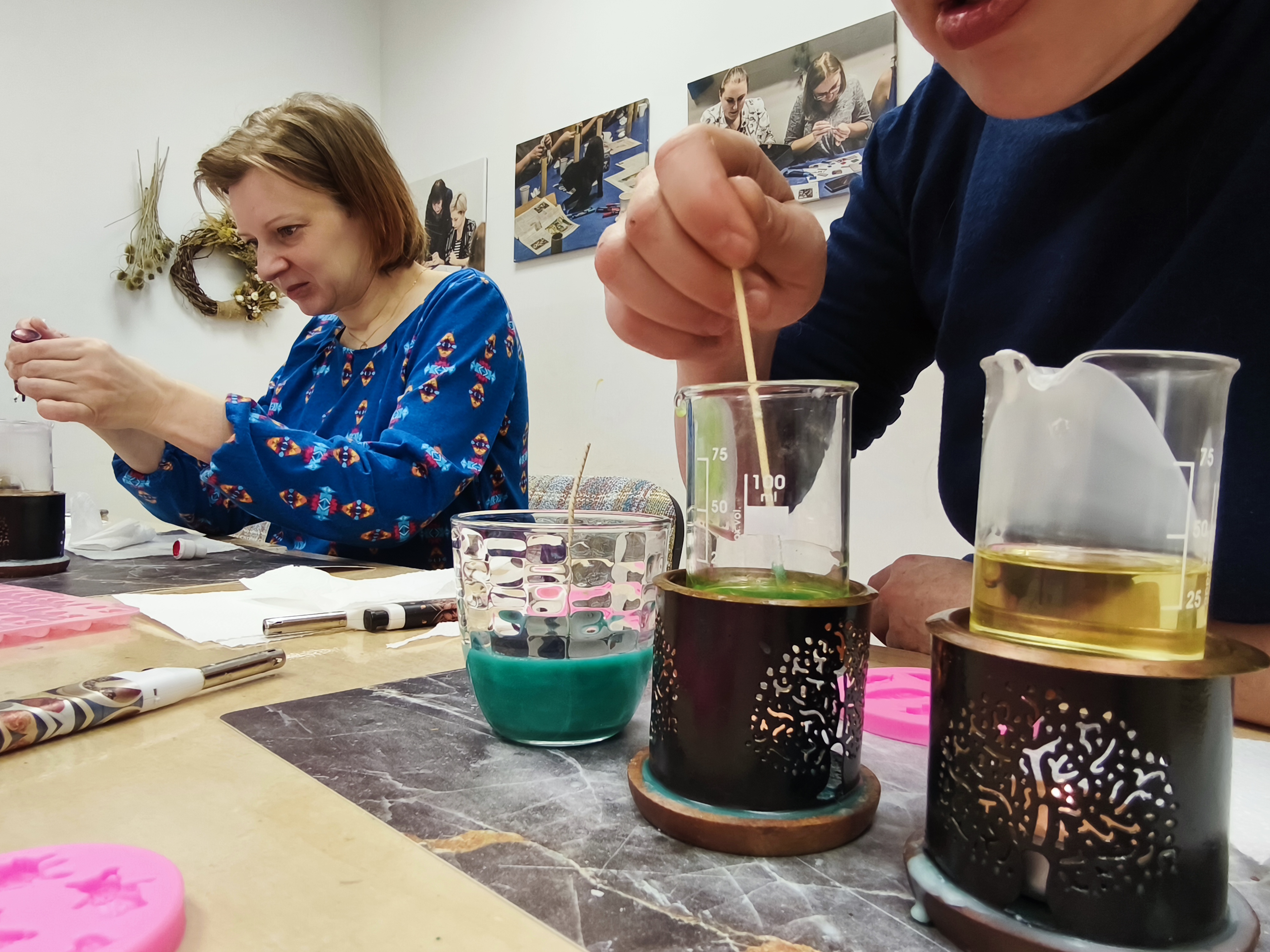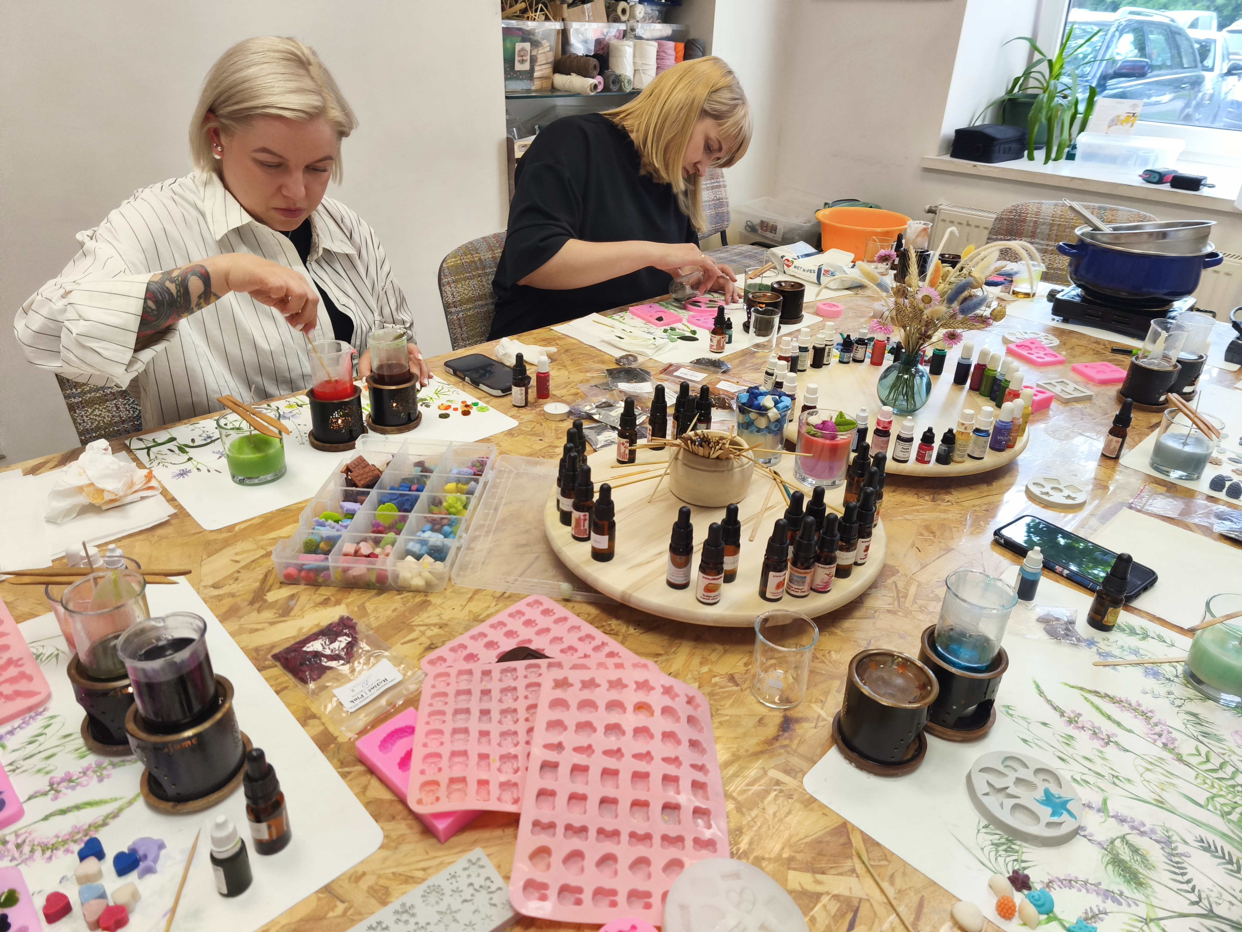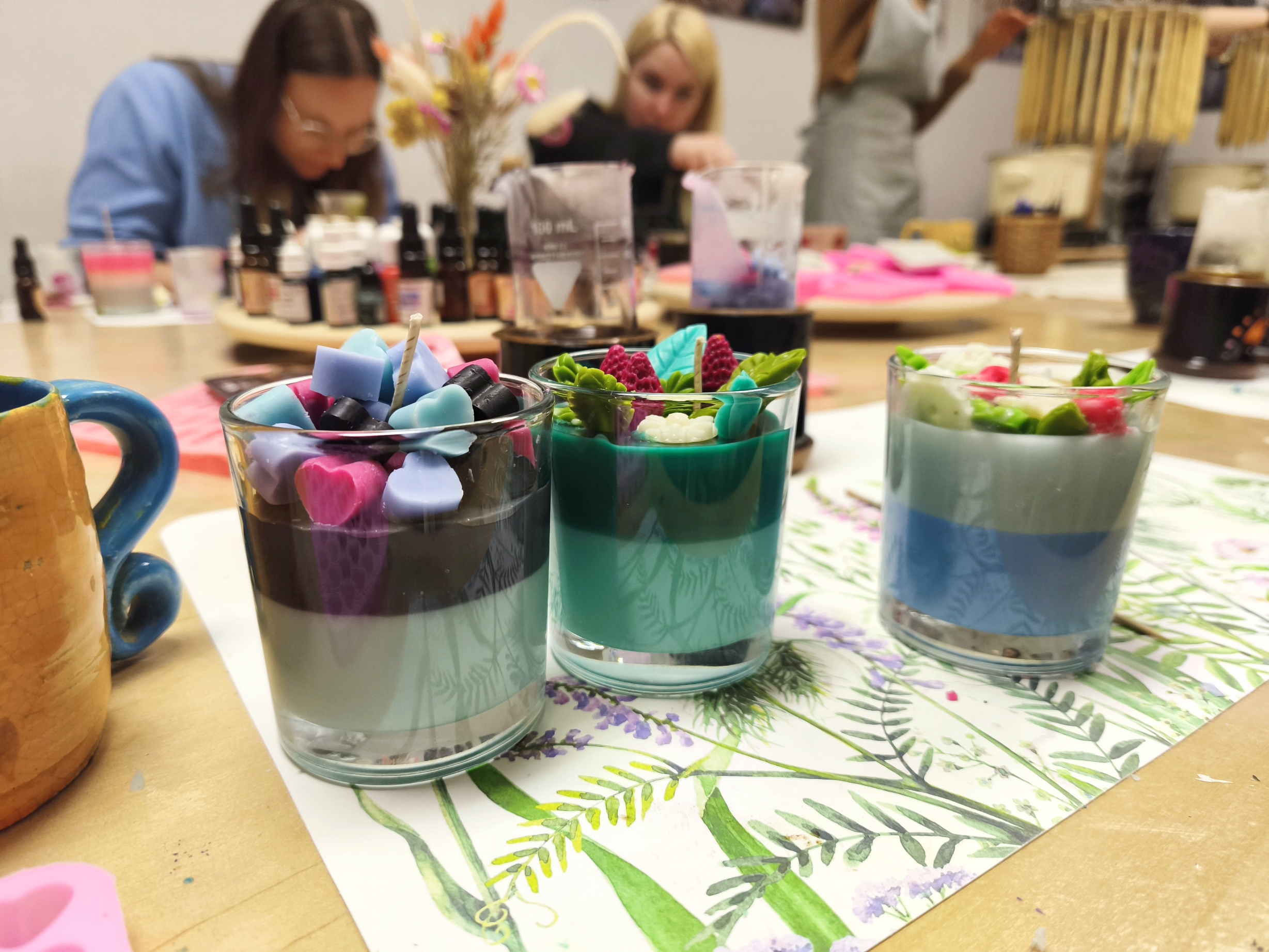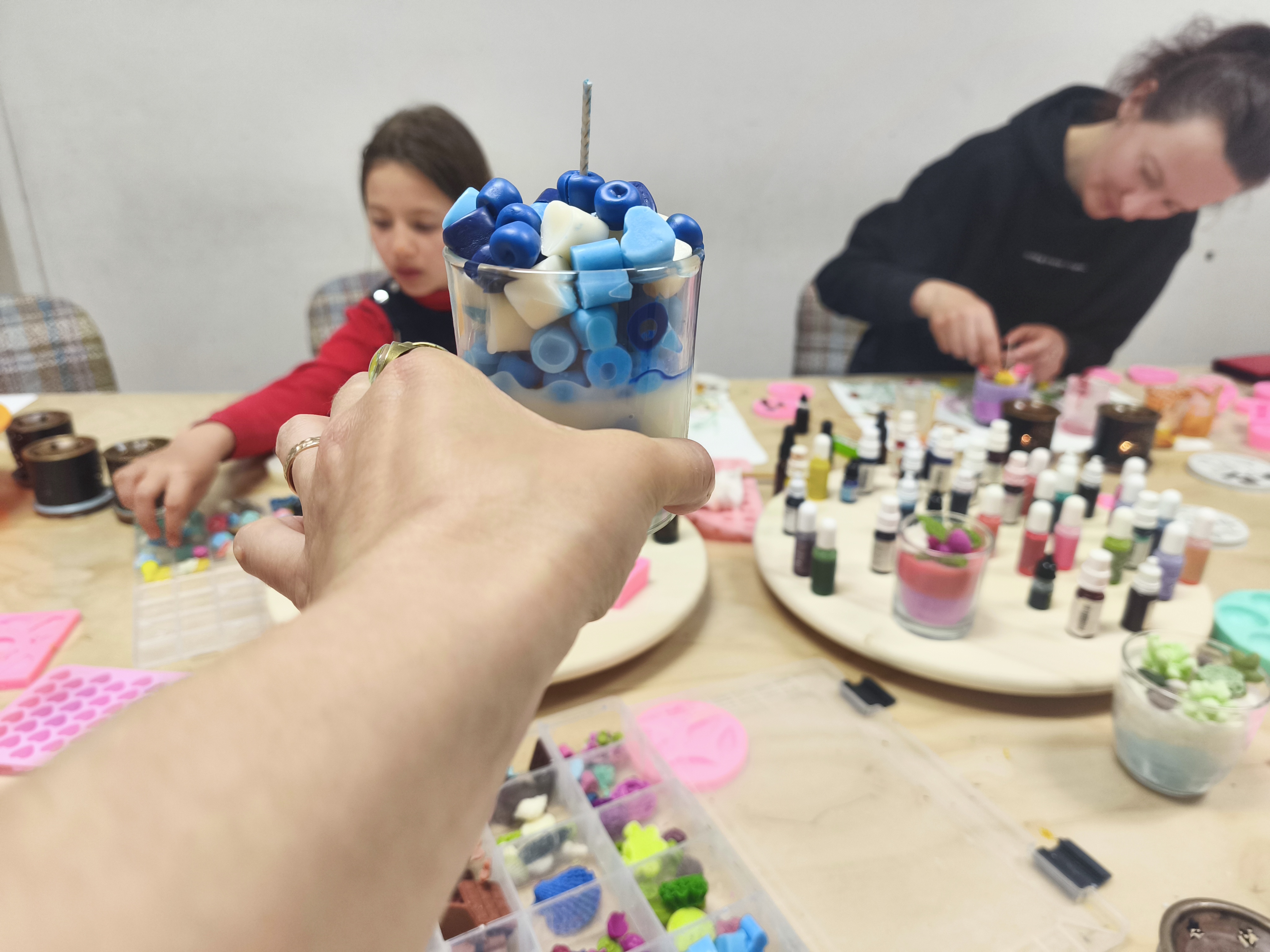 Kviečiame į jaukų ir kūrybišką užsiėmimą, kuriame kursite spalvingą ir kvapnią žvakę stikliniame inde. Darbas prasidės nuo spalvų ir kvapų – sojų vašką nuspalvinsite ir pakvepinsite taip, kaip patinka jums - naudosite narūralius eterinius aliejus, o kol žvakė stingsta, jūsų laukia dar viena kūrybinė dalis – mažų formelių liejimas. Iš sojų vaško išsiliesite mielas smulkias dekoracijas: gėlytes, šokoladukus, saldainiukus, širdeles ir kitas žavingas detales, kurios papuoš jūsų žvakę ir suteiks jai išskirtinumo. Tai tarsi mažas žaidimas su spalvomis, kvapais ir formomis – atpalaiduojantis, šiltas ir jaukus laikas sau.