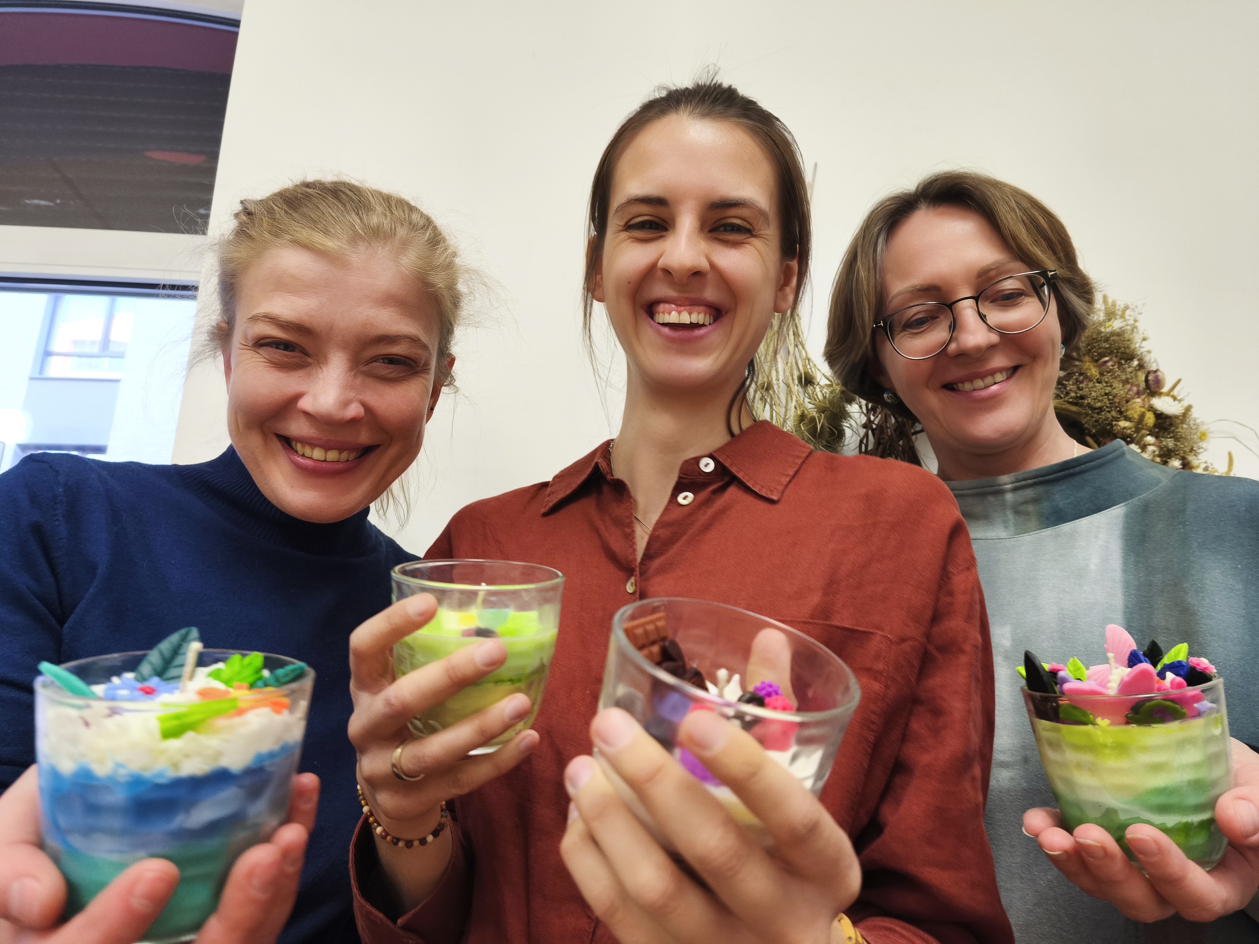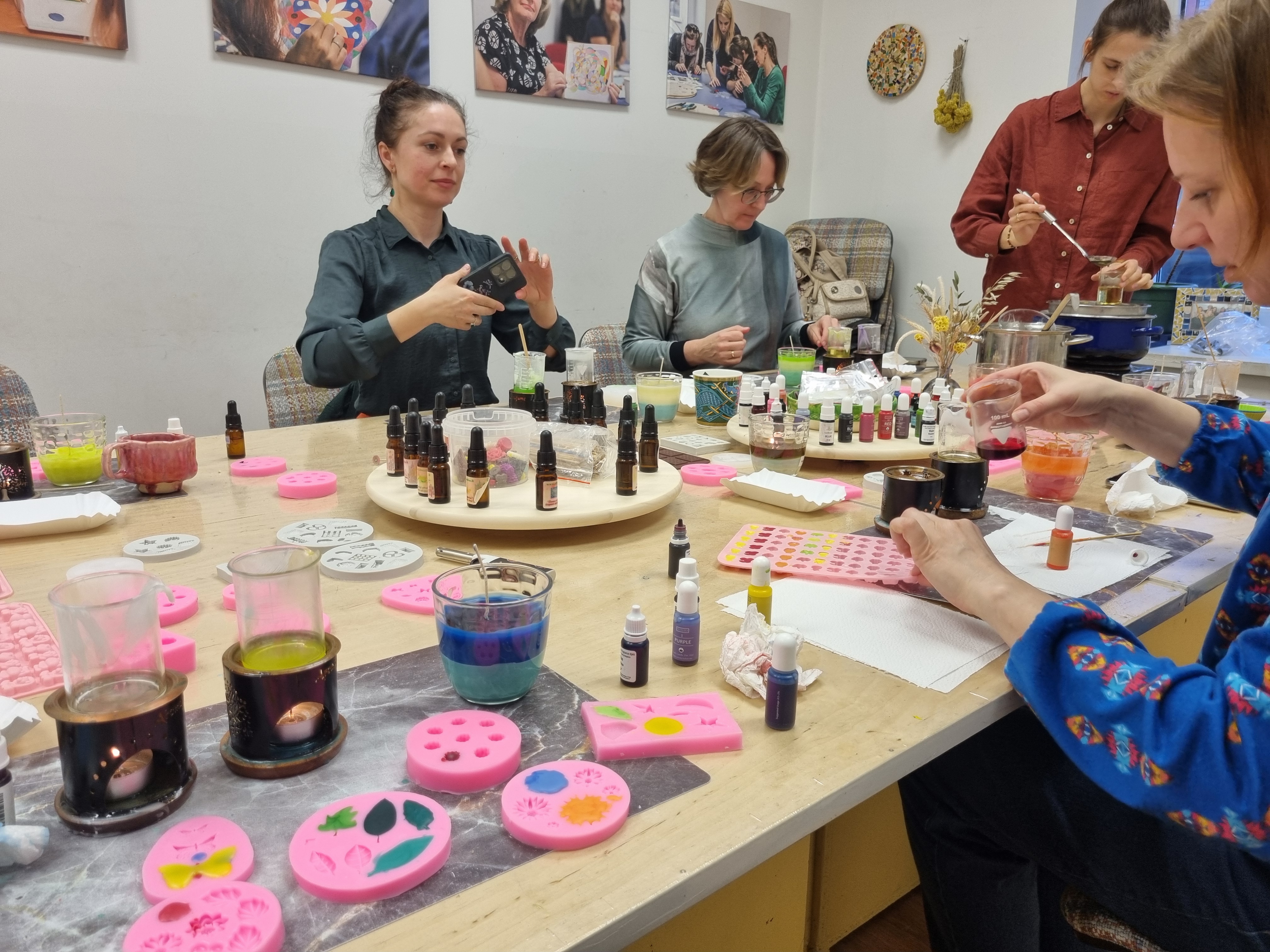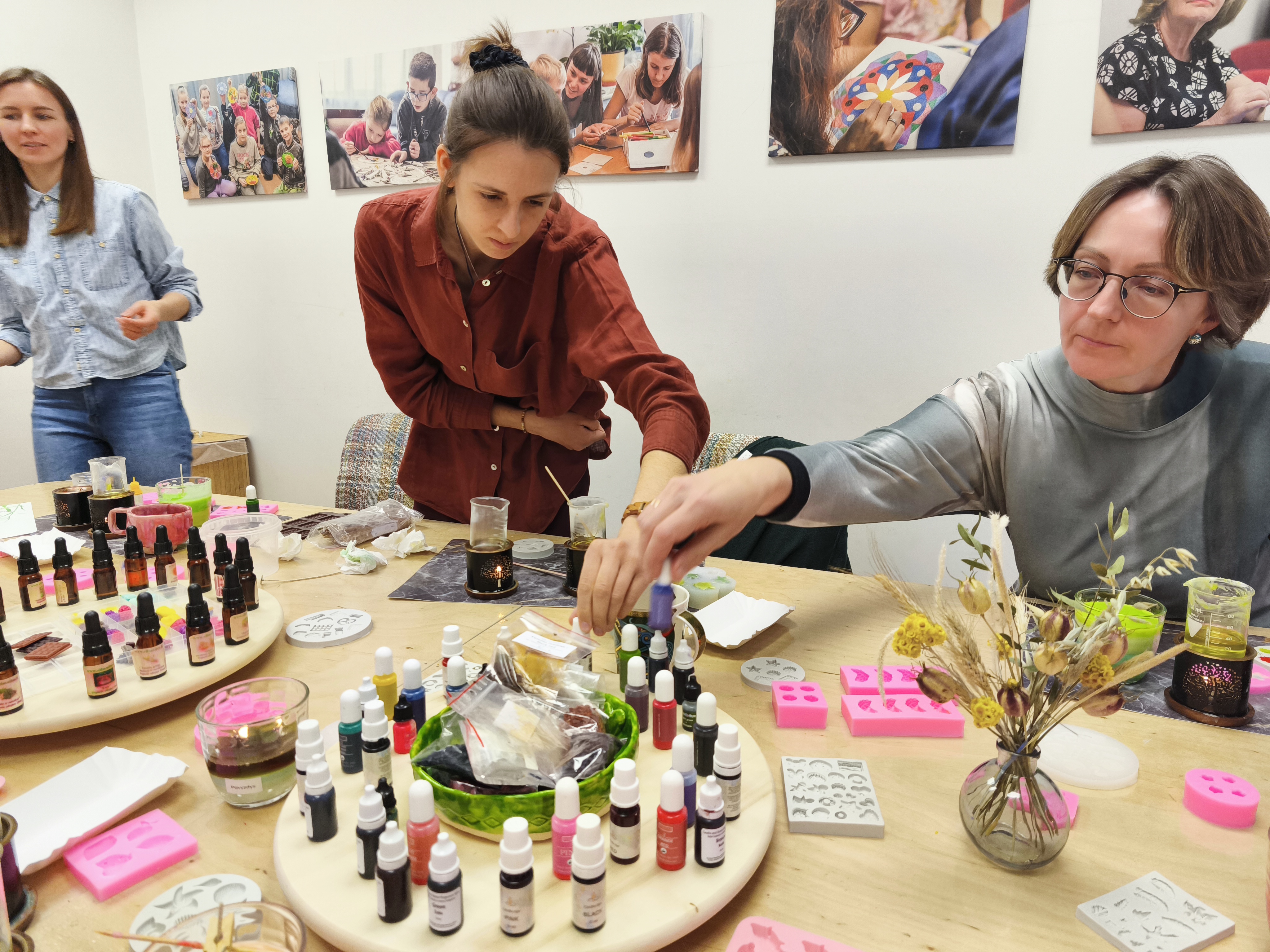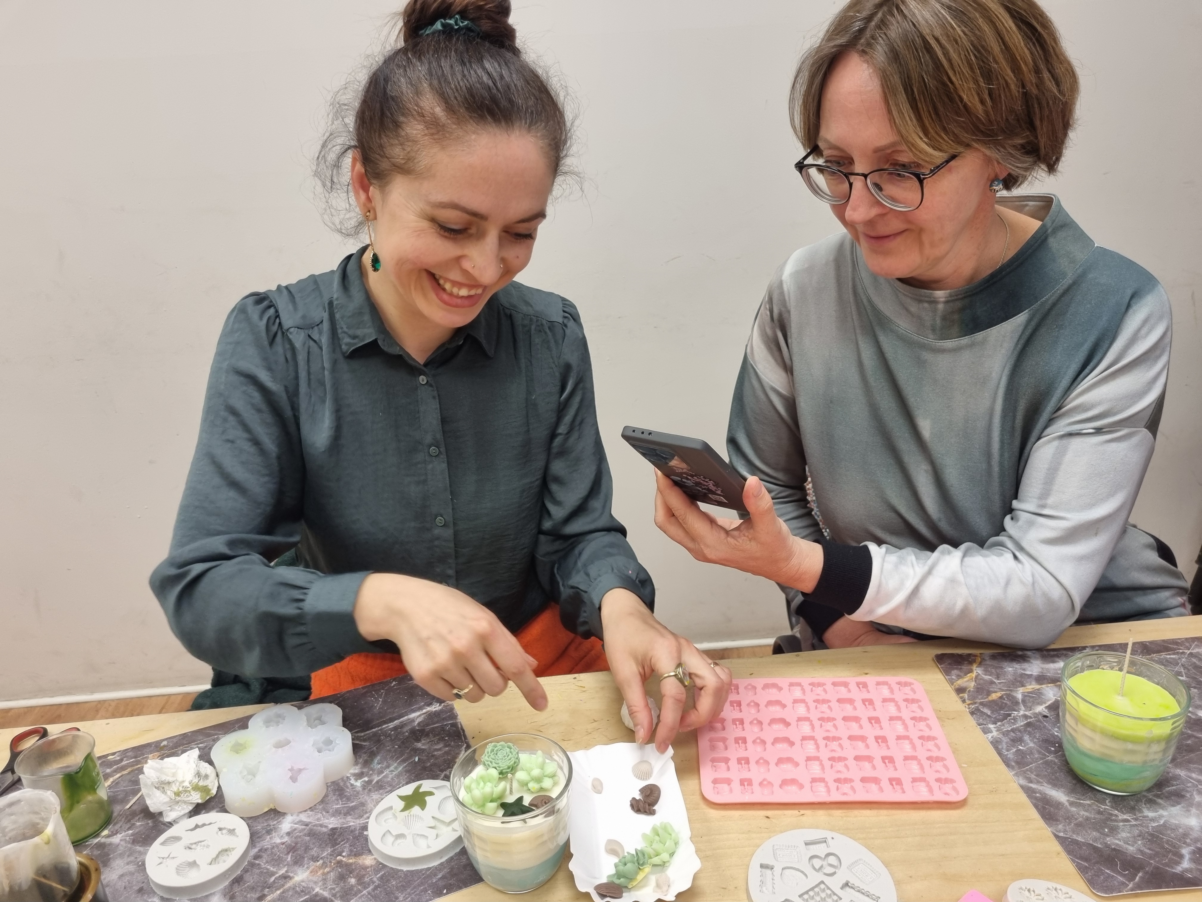 Kviečiame į jaukų ir kūrybišką užsiėmimą, kuriame kursite spalvingą ir kvapnią žvakę stikliniame inde. Darbas prasidės nuo spalvų ir kvapų – sojų vašką nuspalvinsite ir pakvepinsite taip, kaip patinka jums - naudosite narūralius eterinius aliejus, o kol žvakė stingsta, jūsų laukia dar viena kūrybinė dalis – mažų formelių liejimas. Iš sojų vaško išsiliesite mielas smulkias dekoracijas: gėlytes, šokoladukus, saldainiukus, širdeles ir kitas žavingas detales, kurios papuoš jūsų žvakę ir suteiks jai išskirtinumo. Tai tarsi mažas žaidimas su spalvomis, kvapais ir formomis – atpalaiduojantis, šiltas ir jaukus laikas sau.