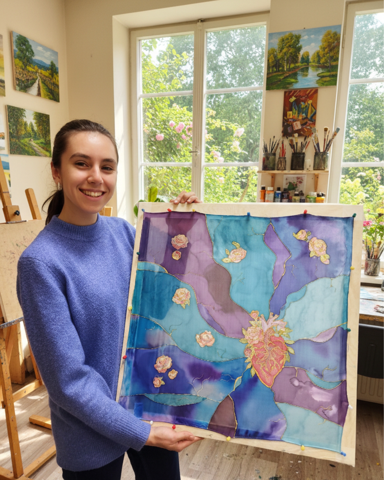- Tapyba ant šilko skatina kūrybiškumą ir kantrybę – spalvų išdžiuvimas atskleidžia netikėtus raštus.